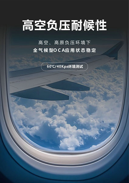 高空、高原负压环境下,全气候型OCA需承受60℃/40Kpa环境挑战: